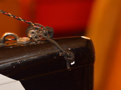 ![]() Here you can see the micro fairlead used for the sheet line. Its as small as it can be without being too small. |