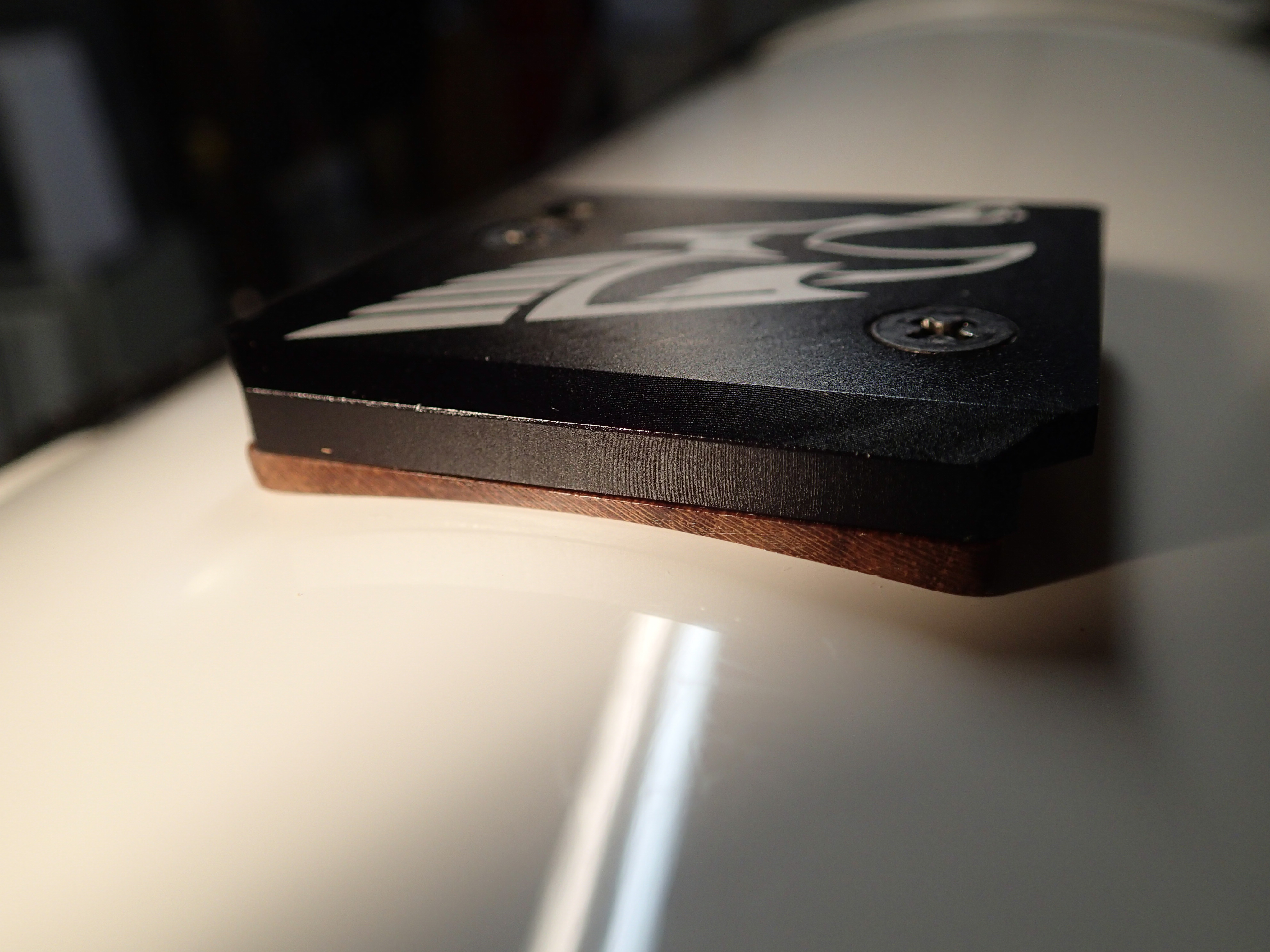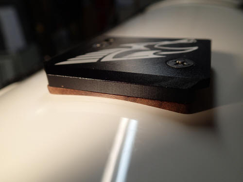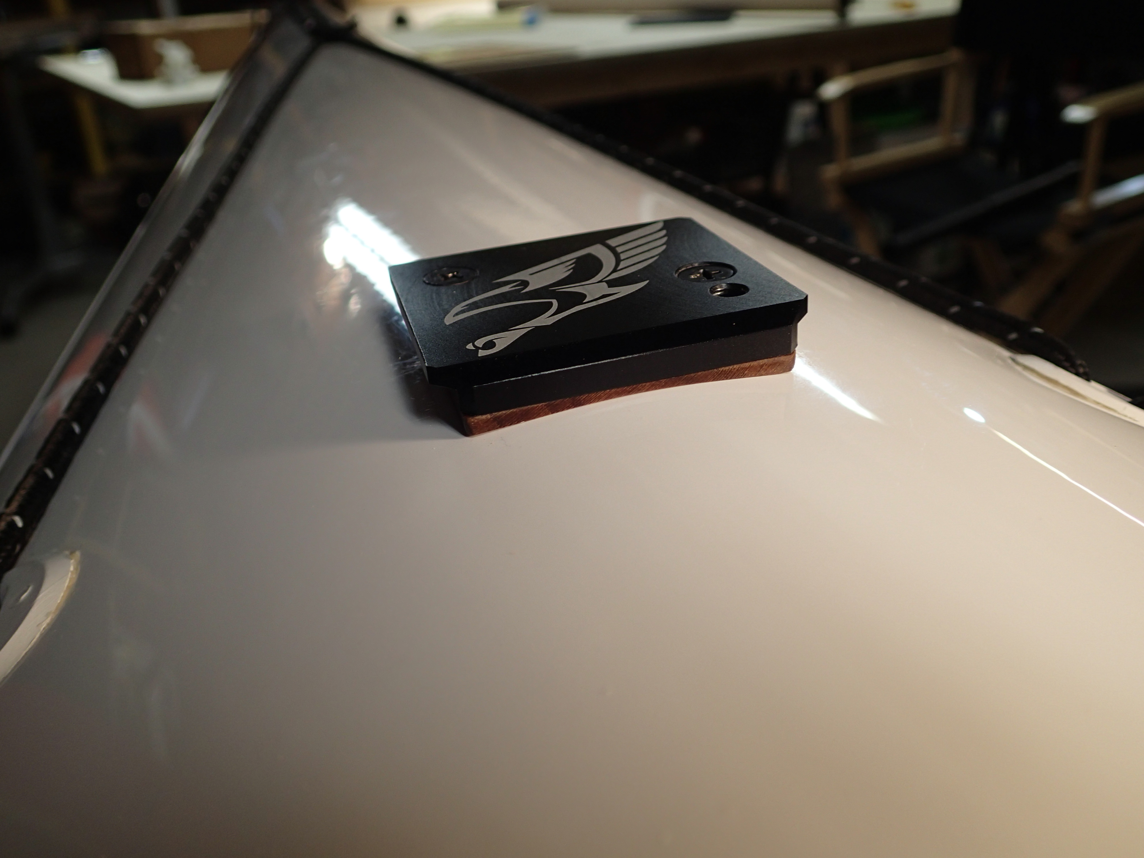 Okoume marine ply wood provides an ideal strength to weight ratio. In this case a epoxy impregnated properly sized block only weighs only 1.7 ounces. And does a great job of spreading out the load. Falcon Sails has blanks to give to customers that are doing a expedition rig install. Just ask. |